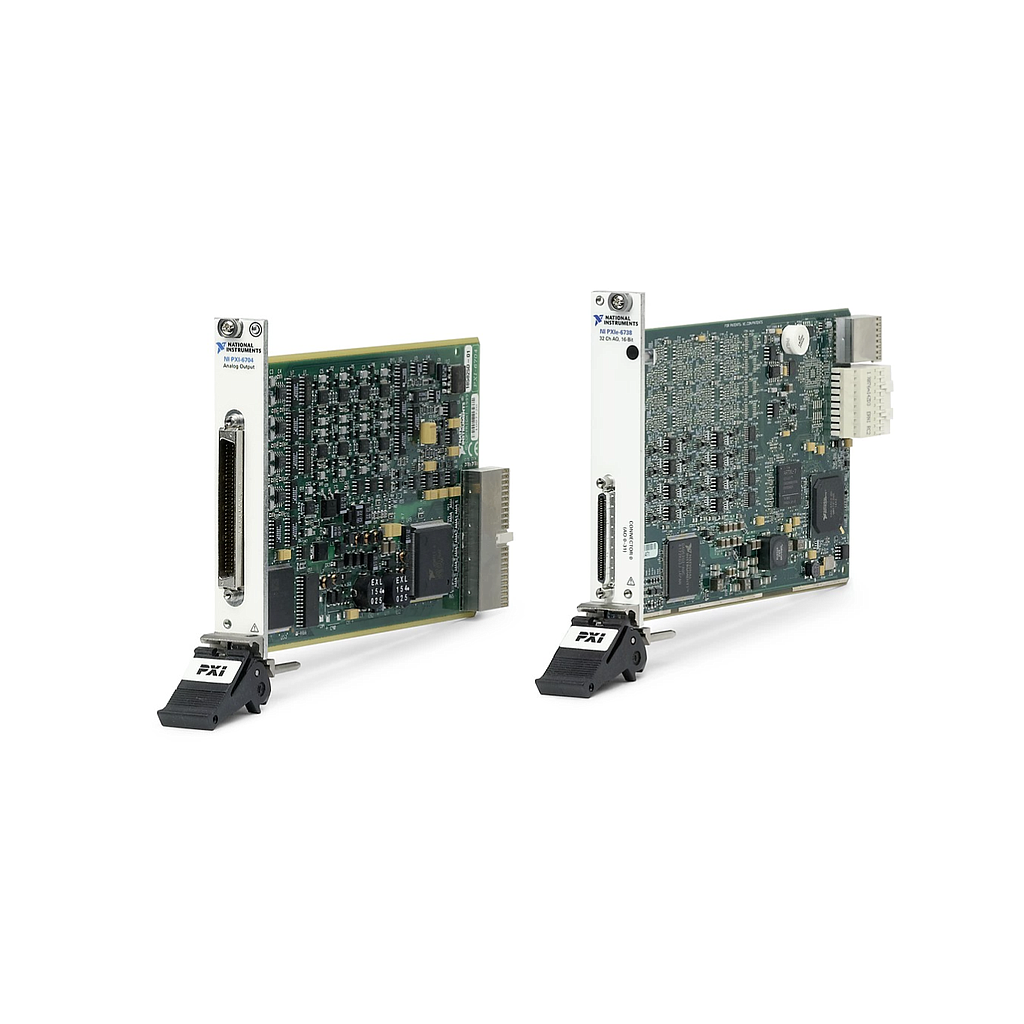 The PXI Analog Output Module supports both static and software-timed voltage output applications. This module include 5 V TTL/CMOS digital I/O lines. Some models can deliver simultaneous, multichannel updates for control and waveform output applications, such as stimulus-response, power supply control, high-speed, deterministic control, and sensor/signal simulation. These advanced features help you use the PXI Analog Output Module to replace several kinds of instruments, including stand-alone proportional integral derivative (PID) controllers, low-speed arbitrary waveform generators, and function generators.The PXI Analog Output Module includes the NI-DAQmx driver and configuration utility that simplify configuration and measurements. NI-DAQmx supports NI programming environments as well as Python, ANSI C, C#.NET, and MathWorks MATLAB® software.