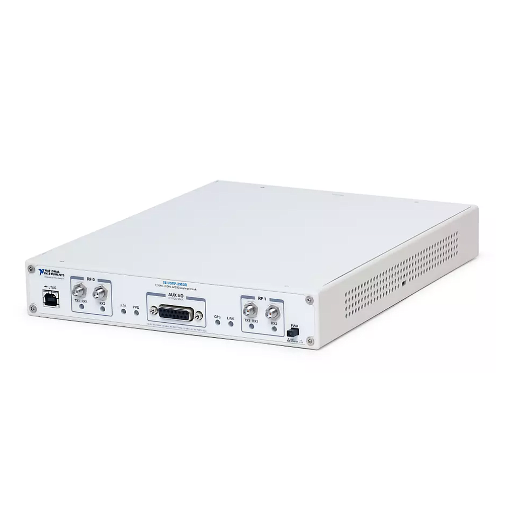 The USRP Software Defined Radio Device is a reconfigurable RF device that includes a combination of host-based processors, FPGAs, and RF front ends. The USRP Software Defined Radio Device include options that range from lower cost options with fixed FPGA personalities to high-end radios with a large, open FPGAs and wide instantaneous bandwidth. These devices can be used for applications such as multiple input, multiple output (MIMO) and LTE/WiFi testbeds, SIGINT, and radar systems.