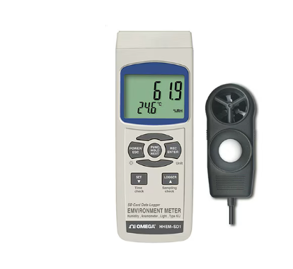 OMEGA HHEM-SD1 Handheld Air Speed, Temperature, Humidity & Light Meter (0~85% RH, 0~50°C, 0~20,000 lux, 0.4~25 m/s)