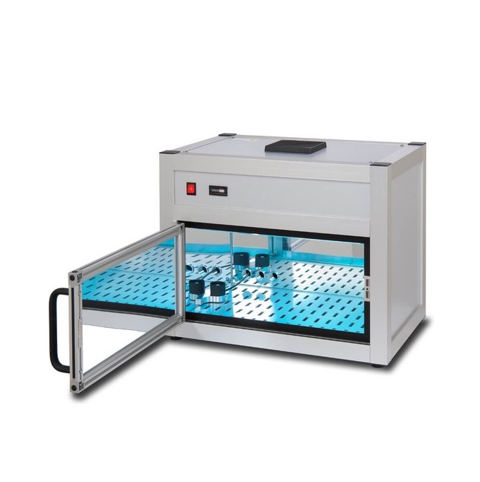 The interior irradiation chamber has a base area of 46 x 32 cm and a height of 29 cm. The sample chamber operating temperature is about 25°C so that thermal damage to the specimen is avoided. Due to the high uniformity of the irradiation, the samples may be positioned in any order.