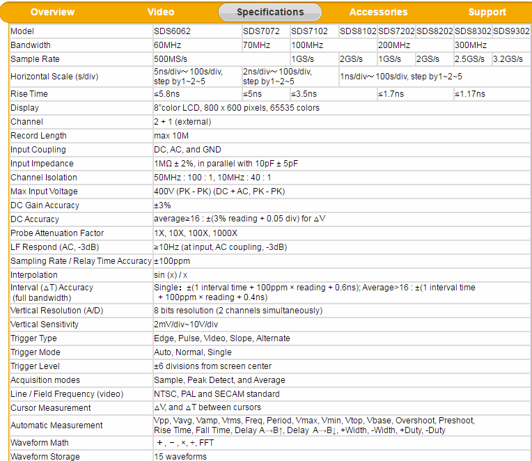 DC Accuracy average≥16 : ±(3% reading + 0.05 div) for △V