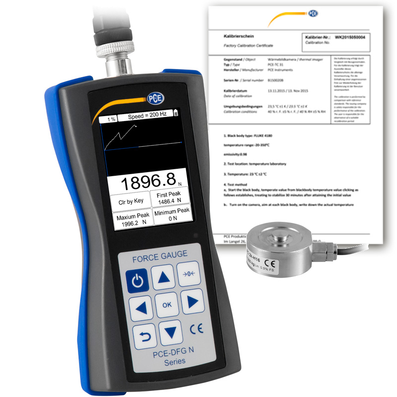 PCE DFG NF 2K-ICA Force Gauge (0~2 kN; 0,2 N; ISO Calibration Cert.)