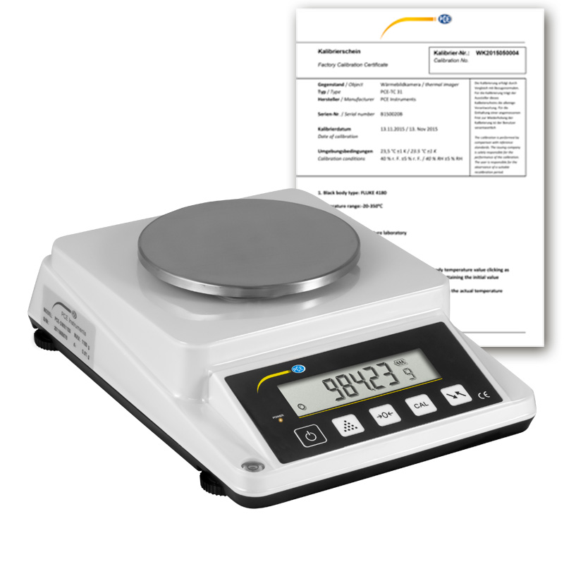 PCE DMS 1100-ICA Paper Scale (0 ... 1100 g / 0 ... 110,000 g / m²; 0,01 g / 1 g / m²; ISO Calibration Certificate)