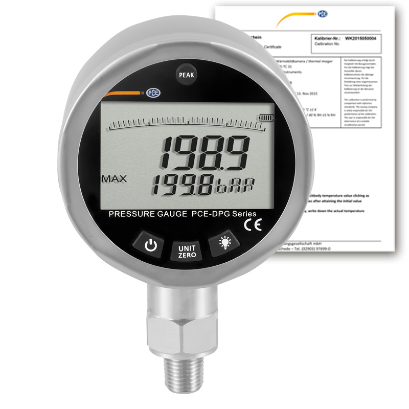 PCE DPG 200-ICA Pressure Gauge (0~2900 psi, 0~200 bar; ISO Calibration Certificate) | EMIN.COM.MM