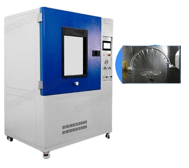 IPX3 and IPX4 waterproof test chamber with oscillating tubes is designed according to IEC60529 clause 14.2.3 and 14.2.4. It is applied to simulate the electronics, luminaire, electric components and auto parts under the conditions of spraying water and splashing water, and then tocheck if they can meet the requirements. This is a chamber-type equipment, the water can be recycled. The radius of oscillating tubes for chamber is R200, R400, R600 and R800. The chamber is configured with a turntable, the bearing capacity of the turntable is 50KG, and it can customized as per user's requirement.