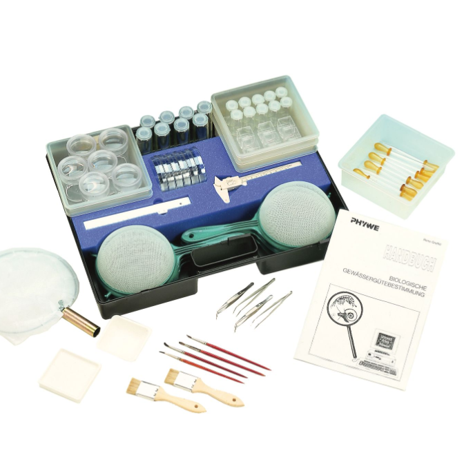 This kit enables 6 working groups to simultaneously carry out examinations of running and standing waters in the field.