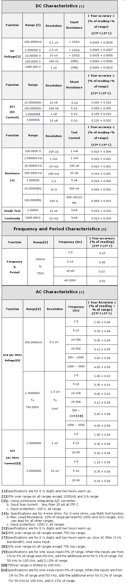 Two and four-wire resistance: 100Ω, 1kΩ, 10kΩ, 100kΩ, 1MΩ, 10MΩ, and 100MΩ.