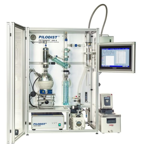 Distillation Control Device DCD4001 for automatic heater control as well as laptop for evaluation & final data generation incl. distillation curve Computer-Controlled Device for PILODIST Distillation systems with all necessary and peripheral components. Contains the operation and control elements for all parameters like Temperature, Vacuum, Limit and Alarm system. The actual parameters can be displayed in graphical curves to inform the operator about the actual status. The set Parameters can be saved as recipes and reloaded. Via a special software button, the actual Head temperature (AET) can be transferred to a excel sheet for the automatic generation of the final data’s with boiling point curve. x 1