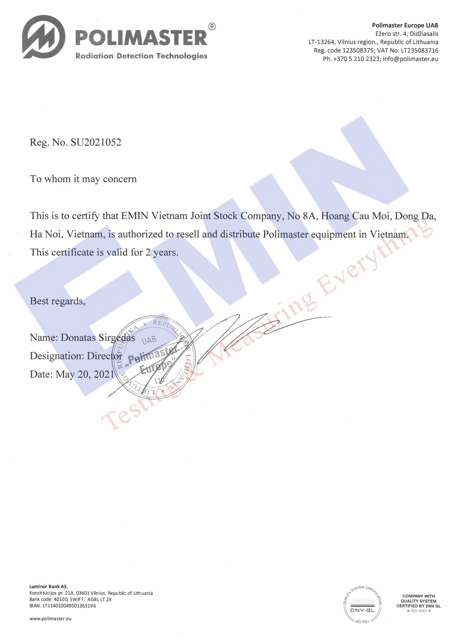 EMIN Vietnam is honored to become the official distributor of Polimaster, confidently bringing to customers of the manufacturer, the most reasonable price in the Vietnamese market!