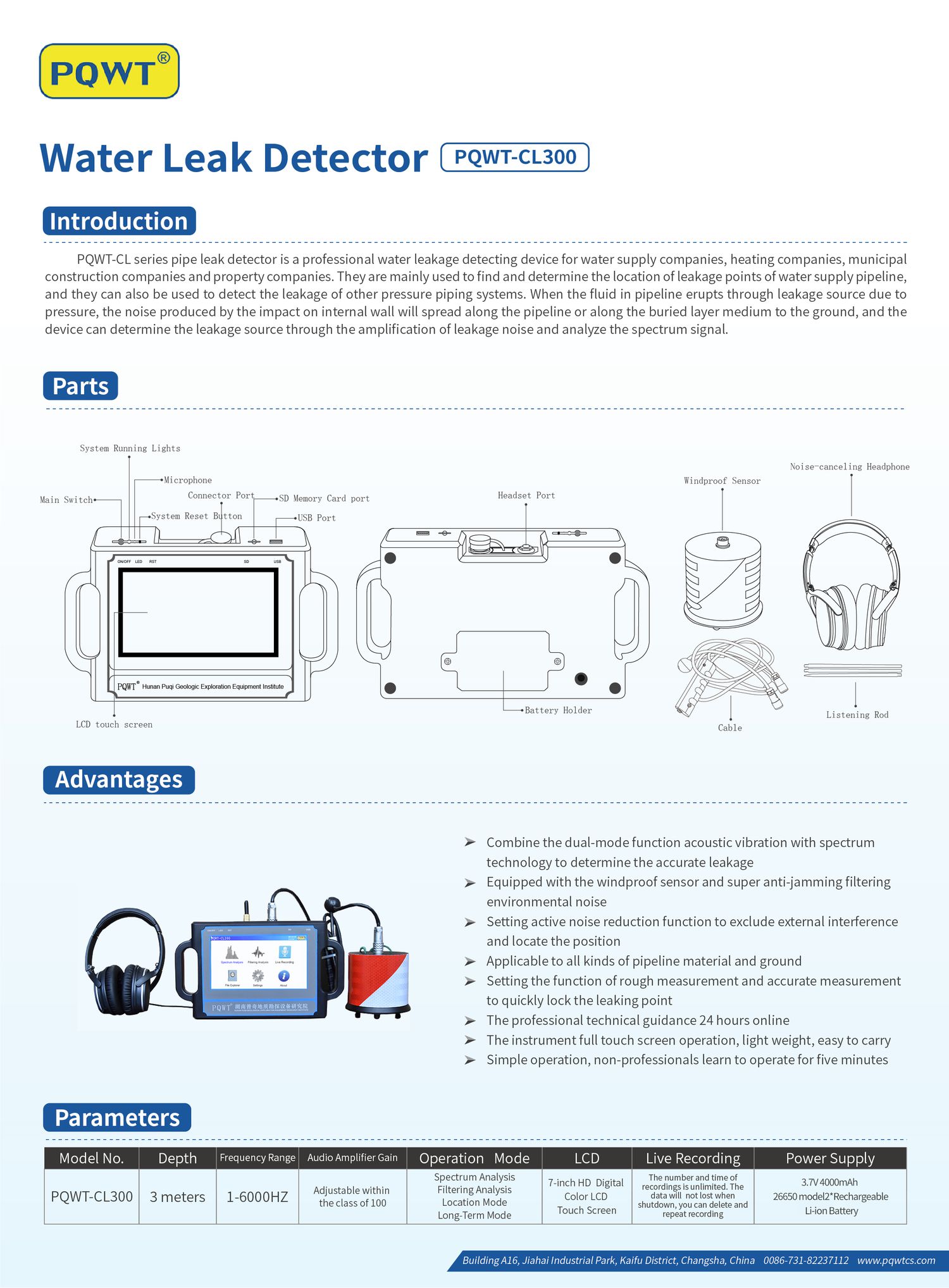PQWT PQWT-CL300 Water Leak Detector (3m; 1~6000Hz) | EMIN.COM.MM
