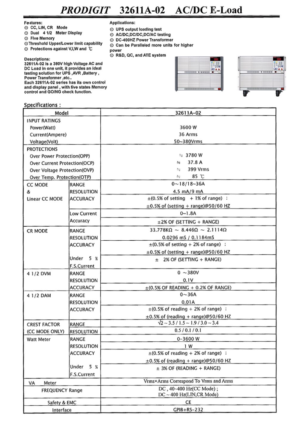 PRODIGIT 32611A-02 AC & DC Electronic Load (380V, 36A, 3600W) | EMIN.COM.MM