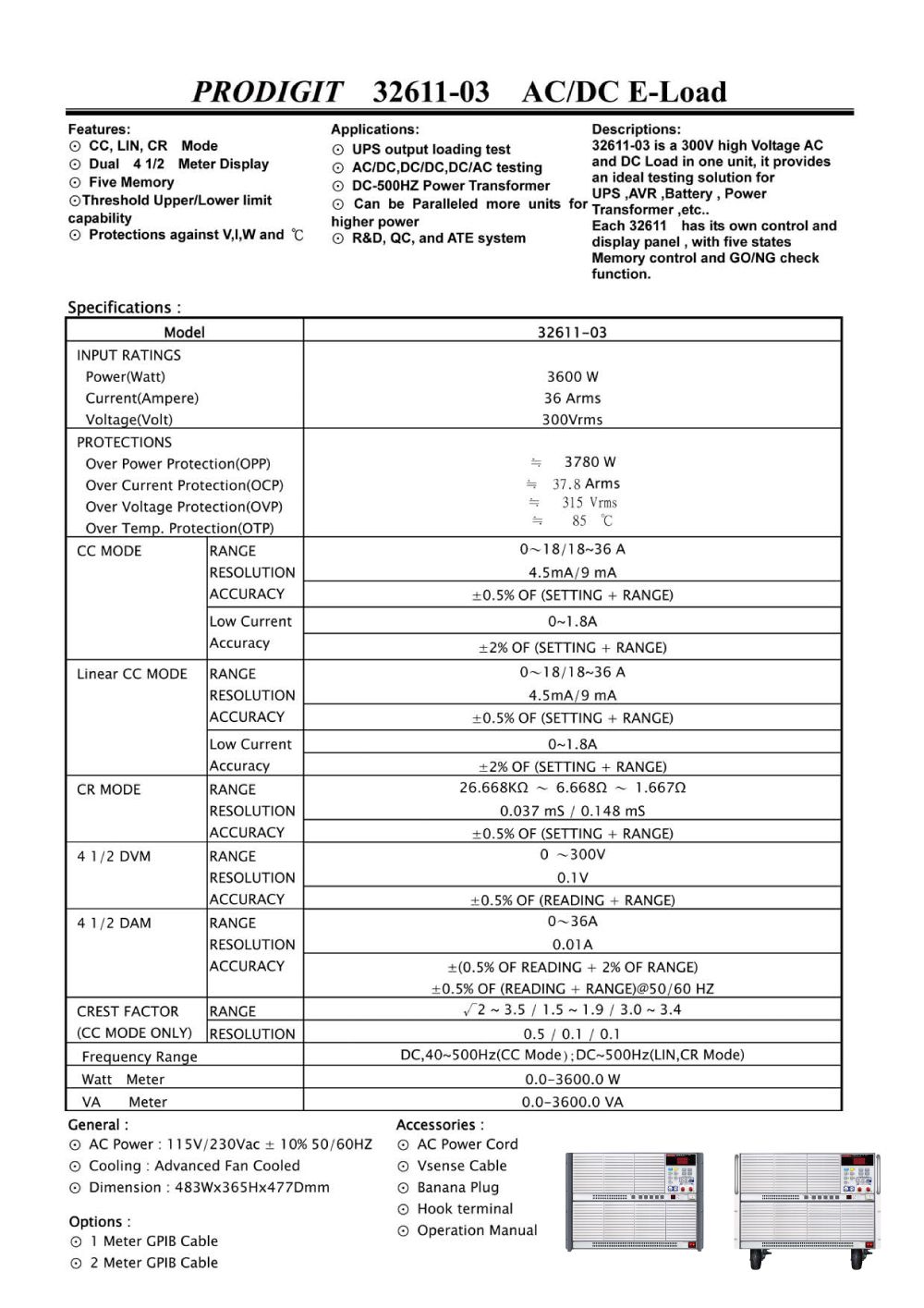 PRODIGIT 32611A-03 AC & DC Electronic Load (300V, 36A, 3600W) | EMIN.COM.MM