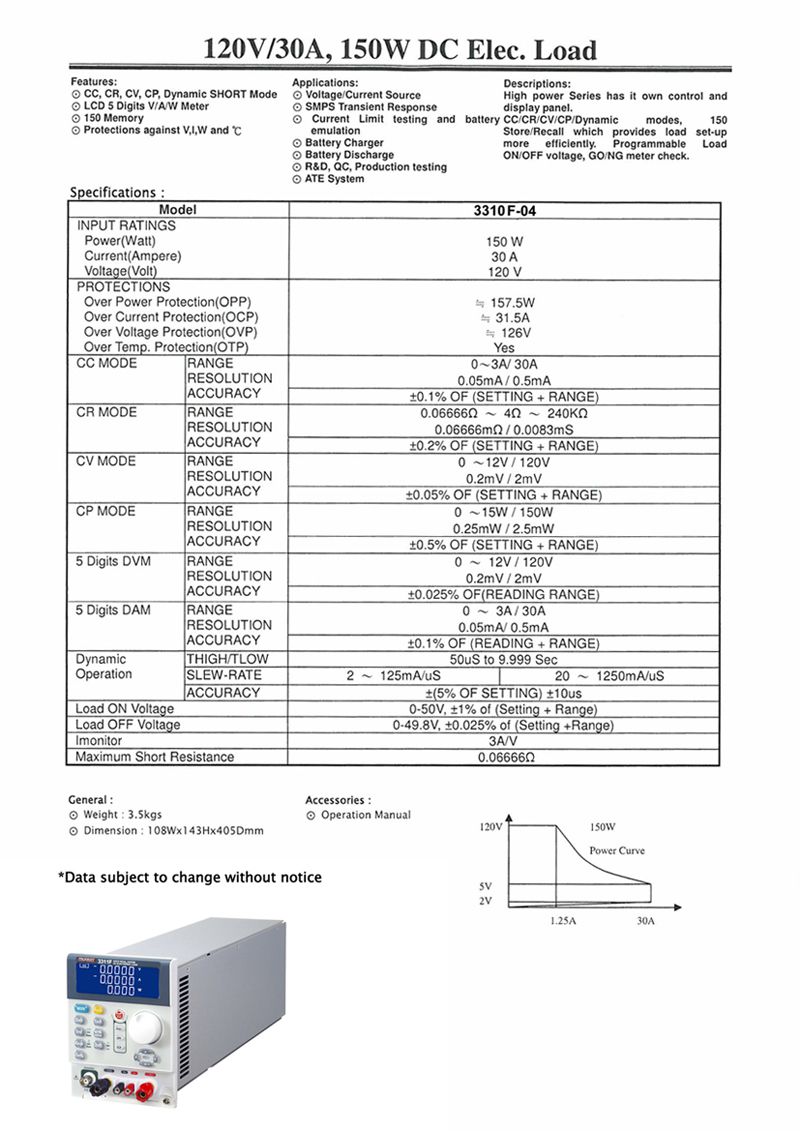 PRODIGIT 3310F-04 DC Electronic Load (120V , 30A , 150W) | EMIN.COM.MM