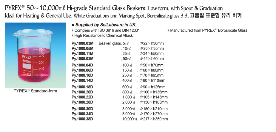 Pyrex Py.1000.18D Hi-grade Standard Glass Beaker (600ml)