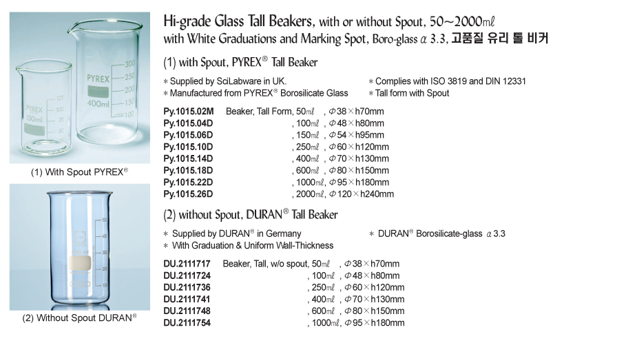 Pyrex Py.1015.14D Hi-grade Glass Tall Beaker (with Spout, 400ml)