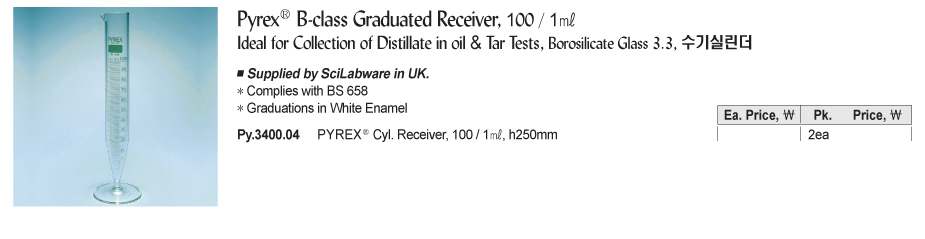 Pyrex Py.3400.04 B-class Graduated Receiver (100ml, 1ml, h250mm) | EMIN.COM.MM