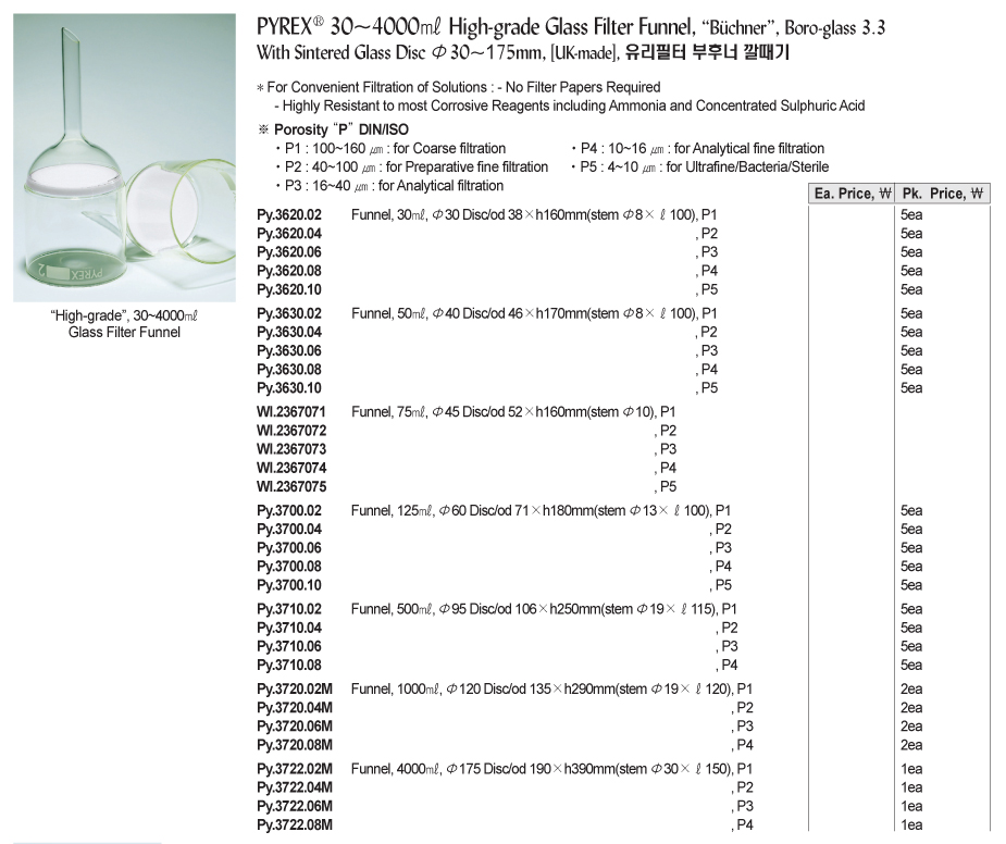 Pyrex Py.3620.10 High-grade Glass Filter Funnel (P5: 4~10μm, 30ml) | EMIN.COM.MM