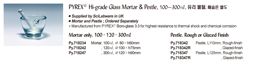 Pyrex Py.718342 Hi-grade Glass Mortar & Pestle (100ml)