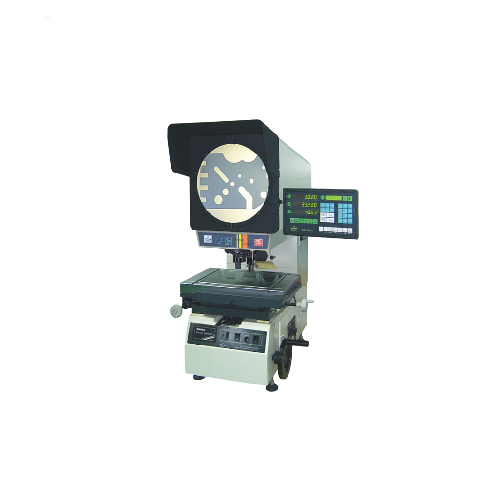 CPJ-3000A/AZ series digital profile projector is an ergonomic and reliable measuring instrument with premium quality. This instrument is equipped with foot-switch and multi-functional data processing system, which is convenient to output data and sample, enabling the user to effectively and sufficiently inspect the measured objects. In addition, the instrument is equipped with rotary plate, which can be installed with 3 lenses. As a result, when magnifies the workpiece required differing magnification, the user can only rotate the rotary plate without replacing another lens, making it more convenient to operate. Adjusting focus is available by ascending and descending the projection tube. Non-ascending-or-descending working table improves the stability, measuring range, and accuracy of the instrument.