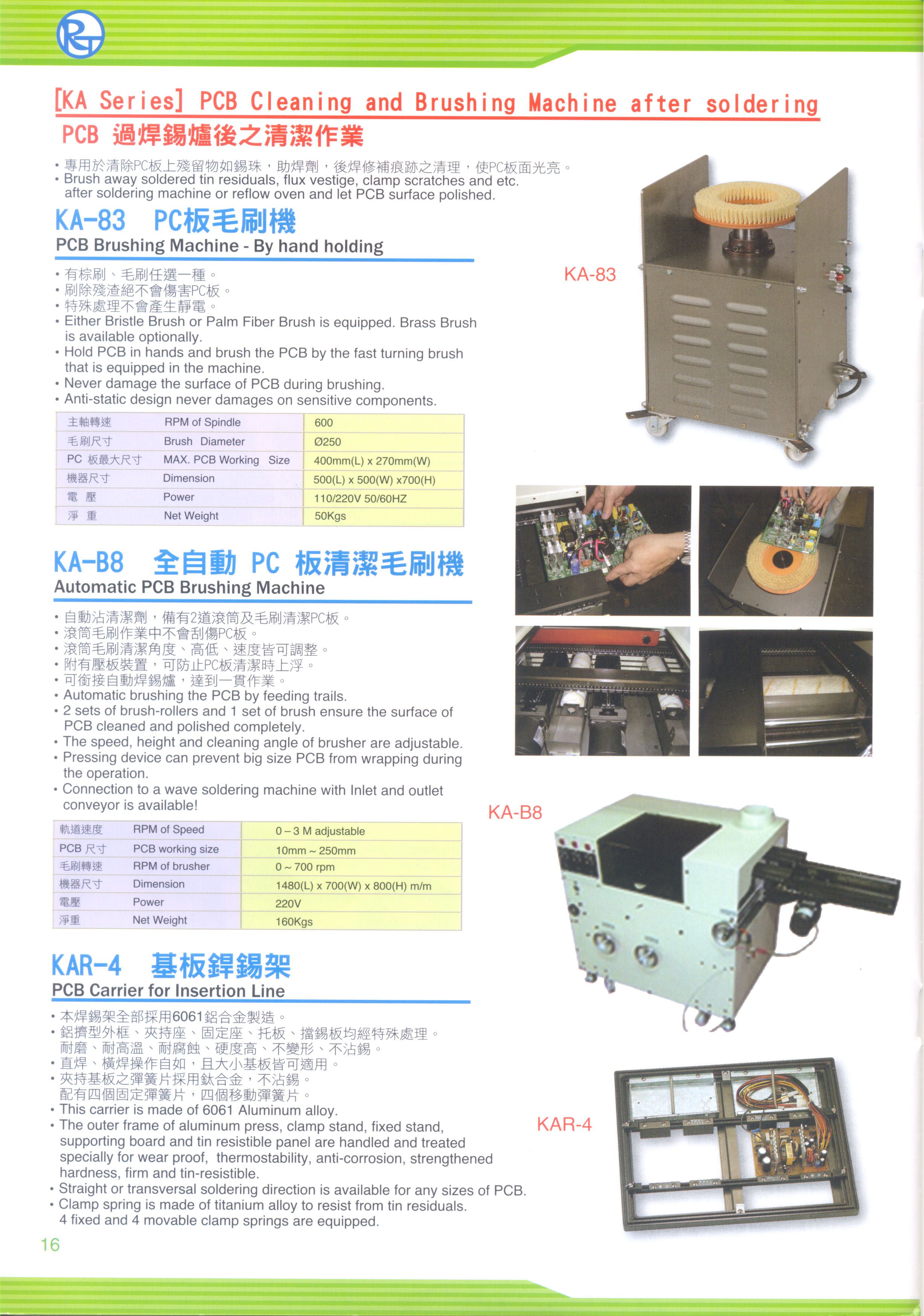 The machine is designed to brush away the leads or soldering residues like solder ball and flux residues, which remain on PC boards after lead cropping process.