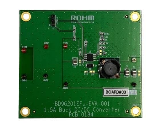 ROHM Semiconductor BD9G201EFJ-EVK-001 Voltage Regulator - Switching Regulator Accepts a power supply input 4.5V to 42V, generates output from 1V to VCC, input voltage range of 10V to 42V and a fixed output of 5V can be produced.