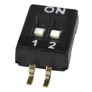 Same Sky (formerly CUI Devices) DS05-127-2-02BK-SMT-TR DIP Switches DIP Switch, SPST, 1.27 pitch, flat actuator, SMT, Tape and reel, 2 position, Black