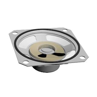 Same Sky (formerly CUI Devices) GA0506M Electromagnetic speaker, 50 mm square, 18.5 mm deep, PET, alnico, 250 mW, 8 ?, 500 Hz, solder eyelets