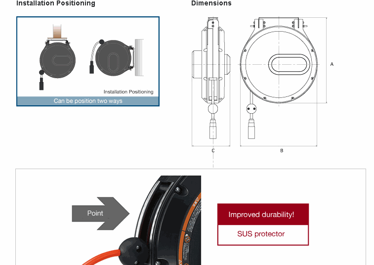 Cord Type | Cord | No. of | Length | Outlet | Connection | Length | A | B | C |