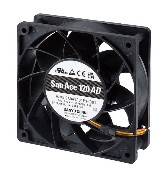 Sanyo Denki 9ADA1201H1H001 Axial AC, DC Axial Fan, 120x120x38mm, 100-240VAC, 119CFM, 3x Wire, Low Speed Sensor | EMIN.COM.MM
