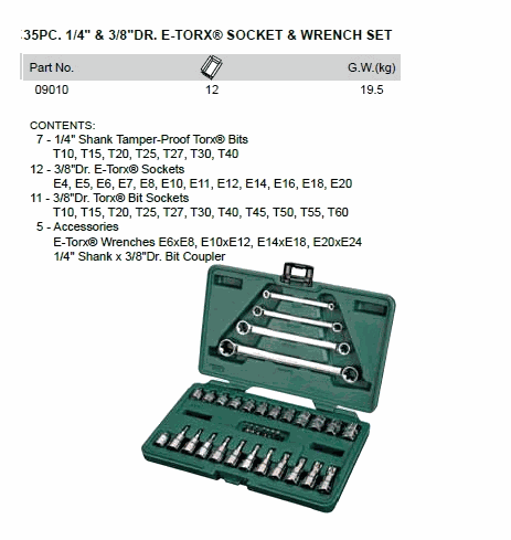 SATA 09010 35PC. 1/4 & 3/8inch DR. E-TORX SOCKET & WRENCH SET (METRIC) | EMIN.COM.MM