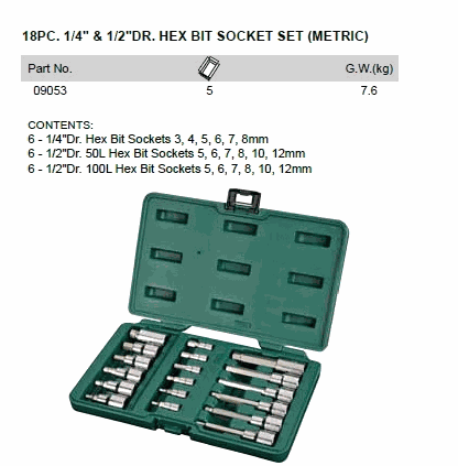 SATA 09053 18PC. 1/4inch & 1/2inch DR. HEX BIT SOCKET SET (METRIC) | EMIN.COM.MM