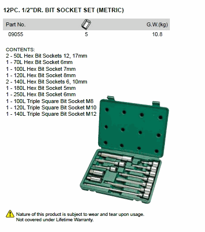 SATA 09055 12PC. 1/2inch DR. BIT SOCKET SET (METRIC)