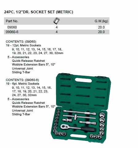 SATA 09060 DR. SOCKET SET (24PC. 1/2inch) | EMIN.COM.MM