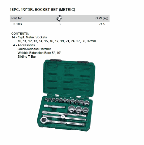 SATA 09203 18PC 1/2inch DR SOCKET SET
