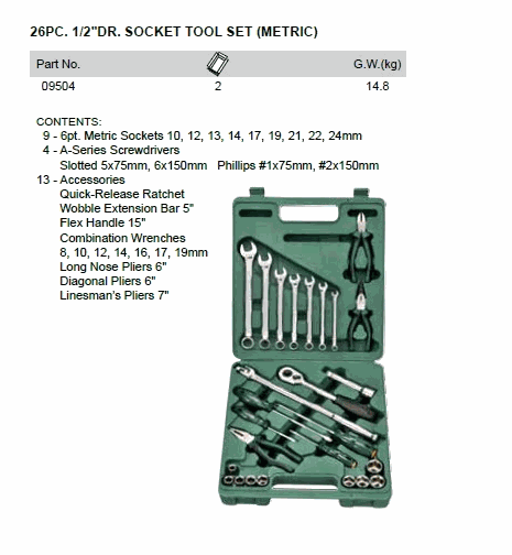 SATA 09504 26PC 1/2inch DR SOCKET TOOL SET (METRIC) (1/2inch)