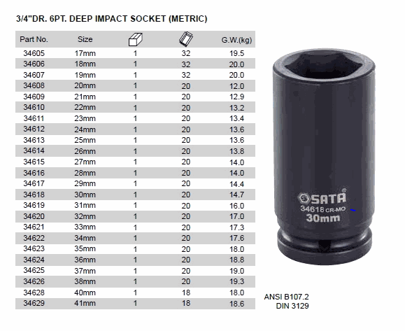 SATA 34618 3/4inch Deep Impact Socket (30mm) | EMIN.COM.MM