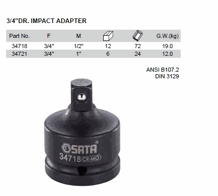 SATA 34721 3/4inch DR IMPACT ADAPTER (3/4inch) | EMIN.COM.MM