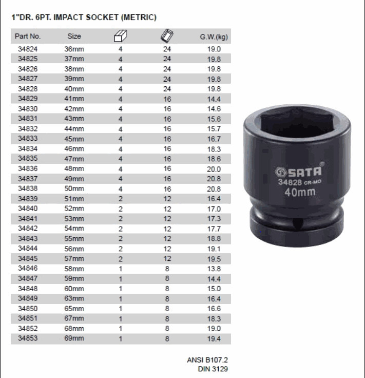 SATA 34841 1inch DR IMPACT SOCKET (1inch,53mm) | EMIN.COM.MM