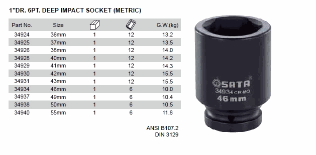 SATA 34938 DR DEEP IMPACT SOCKET (1 inch,50mm)