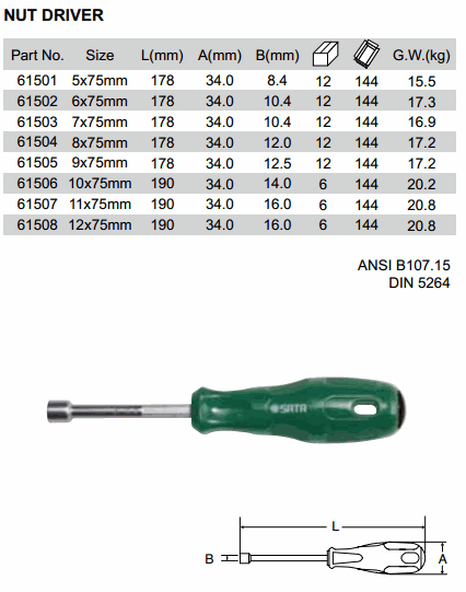 SATA 61503 NUT DRIVER (178mm, 7 x 75mm)