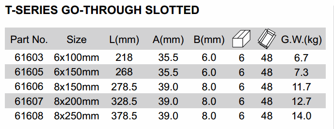 SATA 61607 T-SERIES GO-THROUGH SLOTTED (328.5 mm, 8x200 mm)