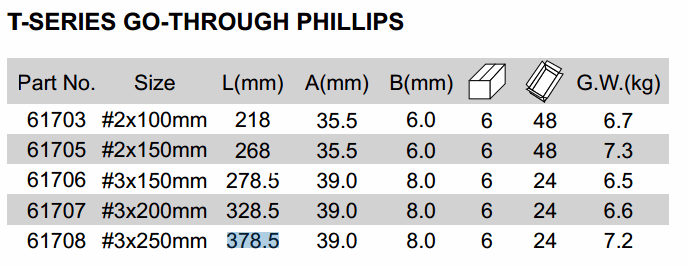 SATA 61708 T-SERIES GO-THROUGH PHILLIPS (378.5 mm, #3x250 mm)
