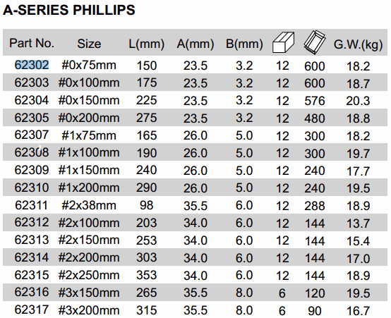 SATA 62314 A-SERIES PHILLIPS (303mm,#2x200mm)