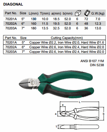 SATA 70203A Diagonal Pliers 7 inch (ø2.6mm) | EMIN.COM.MM