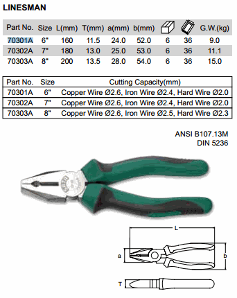 SATA 70302A LINESMAN PLIER 7 inch (7 inch) | EMIN.COM.MM