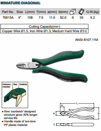 SATA 70615A MINIATURE DIAGONAL PLIER 4 INCH (ø1.5mm) | EMIN.COM.MM