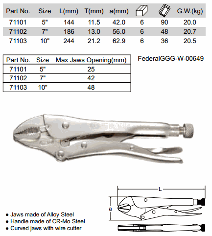 SATA 71103 CURVED JAW LOCKING PLIERS (10 Inch, ø48mm) (10 Inch, ø48mm) | EMIN.COM.MM
