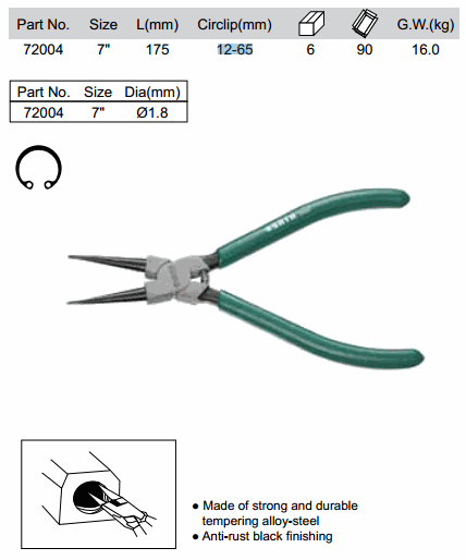 SATA 72004 SNAP RING - INTERNAL CLOSE STRAIGHT (7 inch, 12-65 mm) | EMIN.COM.MM