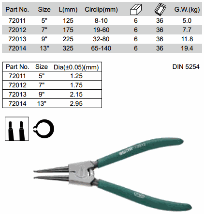 SATA 72014 GERMAN TYPE SNAP RING PLIERS EXTERNAL STRAIGHT (13 inch, 65-140mm) | EMIN.COM.MM