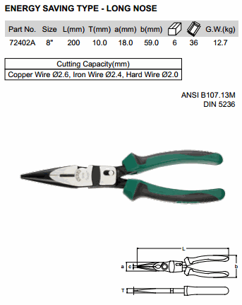 SATA 72402A ENERGY SAVING TYPE - LONG NOSE 8 inch (200mm, ø2.6mm) | EMIN.COM.MM